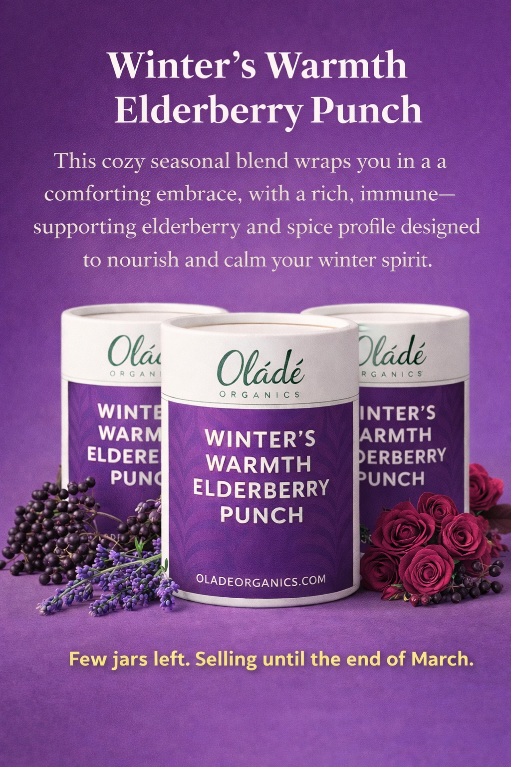 A soothing, antioxidant-rich blend crafted to hydrate, calm, and comfort. Winter’s Warmth Elderberry Punch brings together berry-rich elderberry, soft floral lavender, sweet honeybush, and whole rose for a cup that feels like a gentle exhale. Perfect for winter rituals, cozy nights in, and immune-supporting moments of stillness.